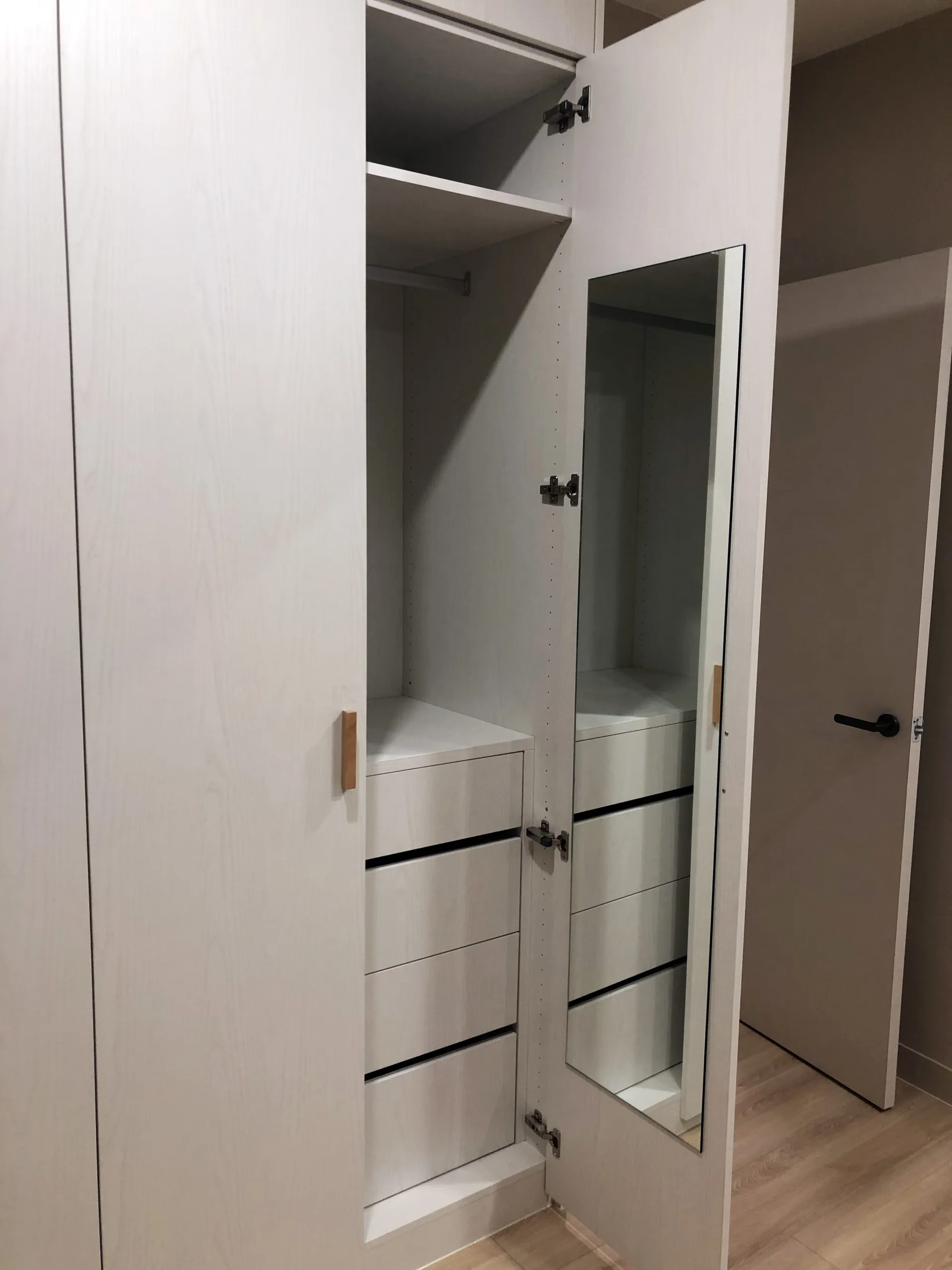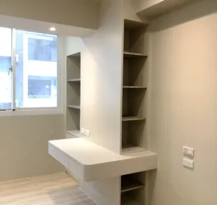 居家柱體為了減少摺線,利用弧形做修飾讓優雅圓弧無所不在,除了增添雅致的場域精神外也讓居家空間更加安全。