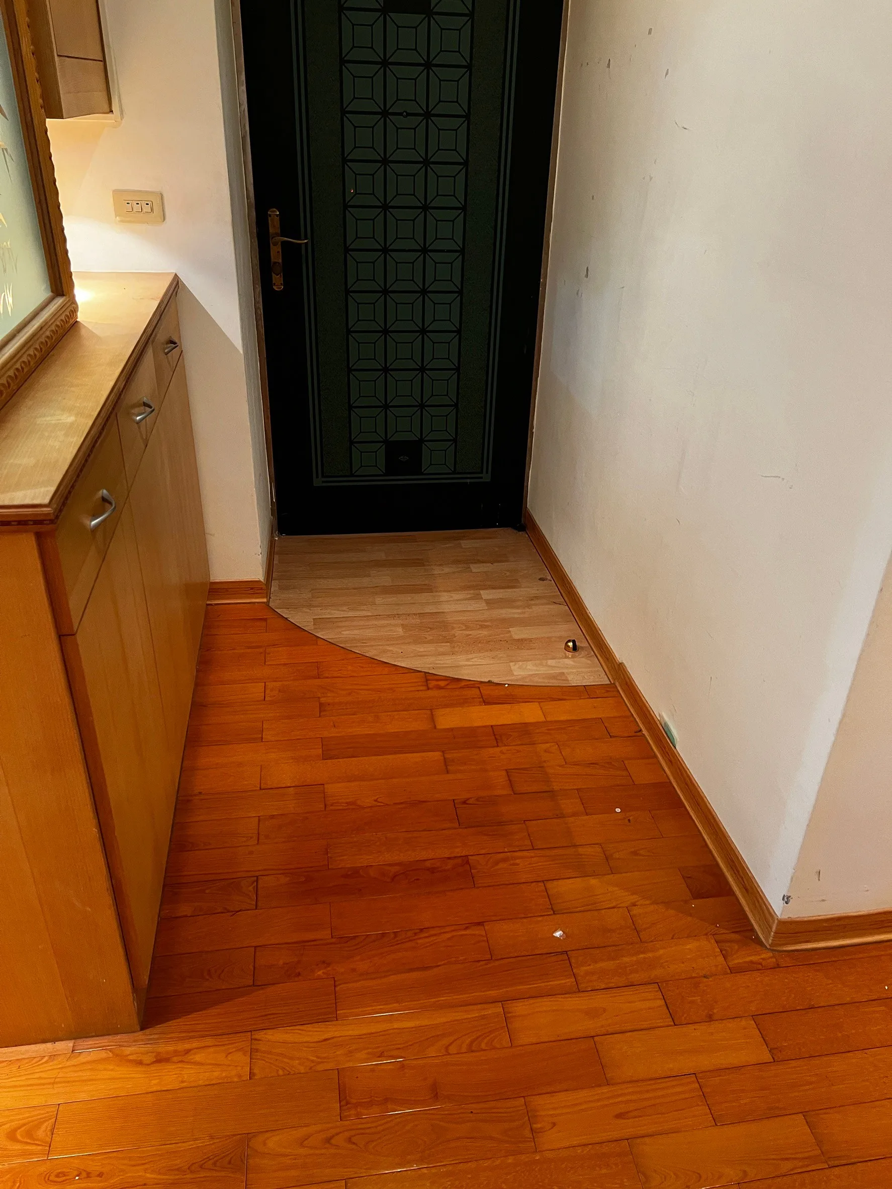 拆除原有裝潢與打除壁癌後,重新整理了地面及牆面,